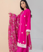 Buy 3 Piece Unstitched Pink Embroidered Shirt Shalwar Dupatta